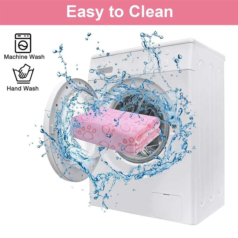 Soft and warm pet blanket with paw print pattern, made of plush pink fabric and washable, ideal for dogs and cats