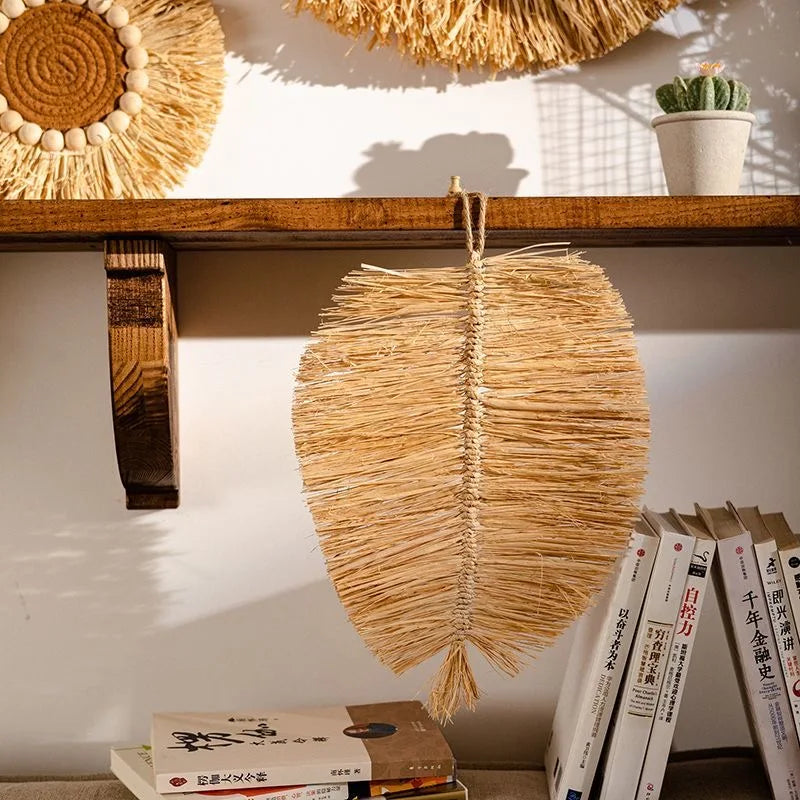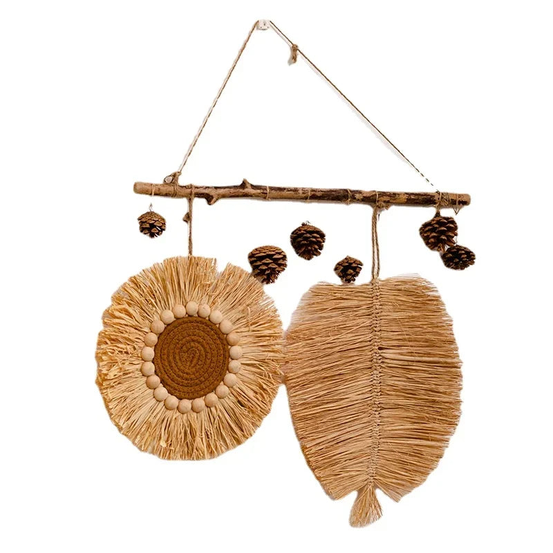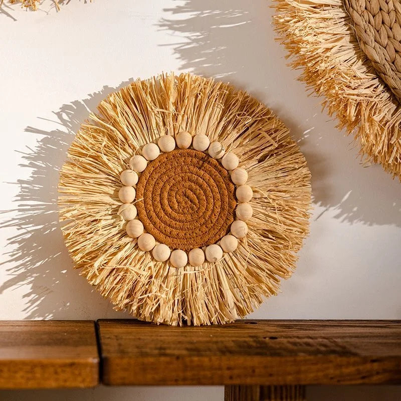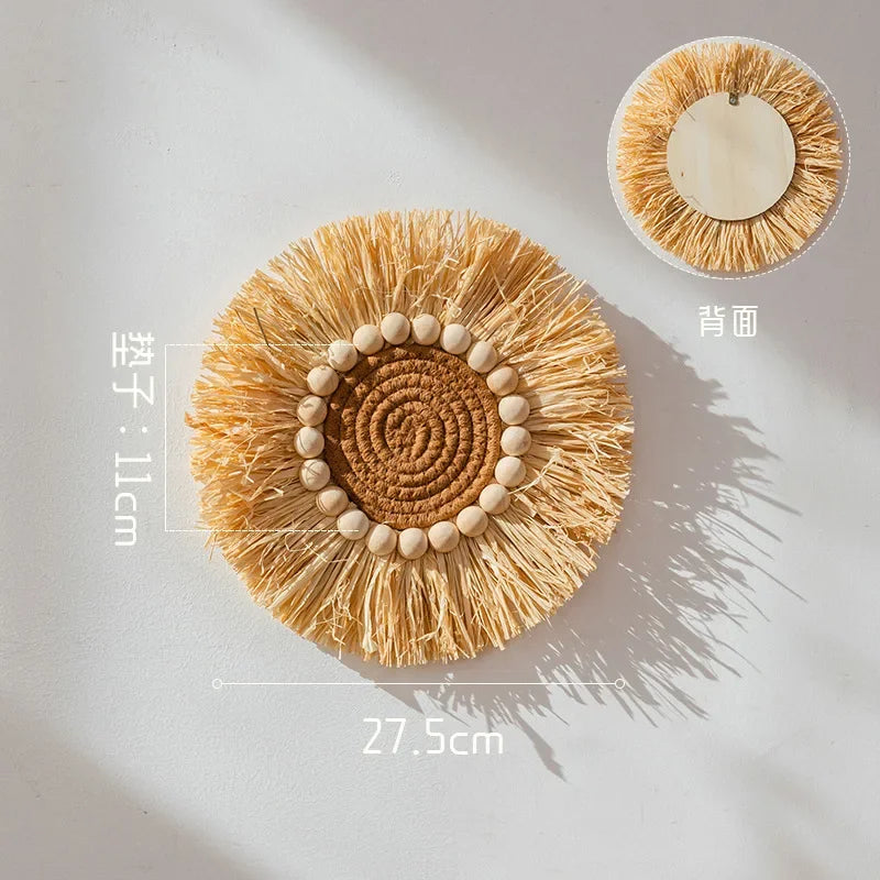 Décoration murale en paille tressée style japonais pastoral