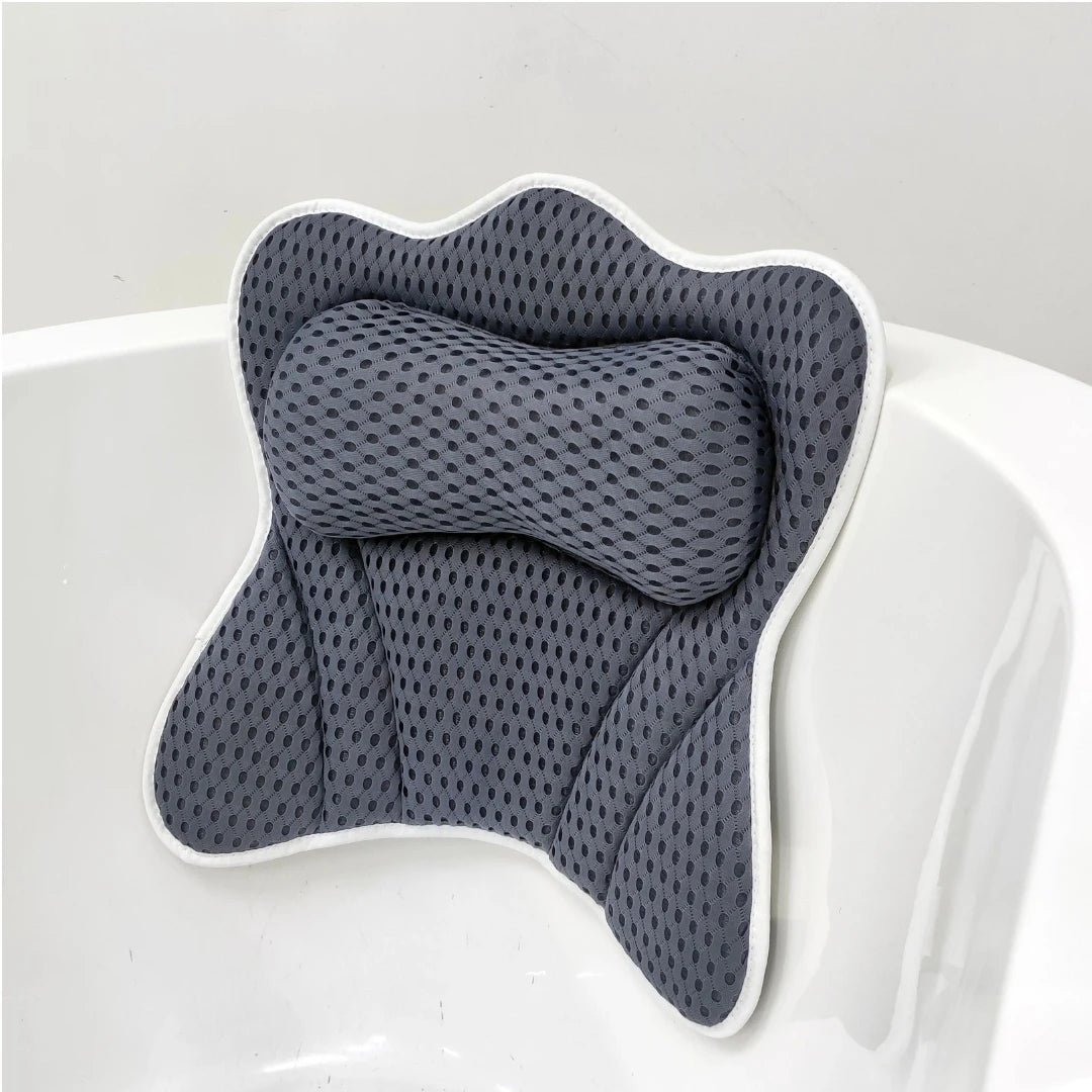 Treat yourself to a spa-like bathing experience with our 4D ergonomic bath pillow , designed to transform your moment of relaxation into a true cocoon of well-being. Thanks to its enveloping design in breathable 4D mesh , this cushion perfectly fits the shape of your head, neck and shoulders, while allowing excellent water drainage and quick drying.