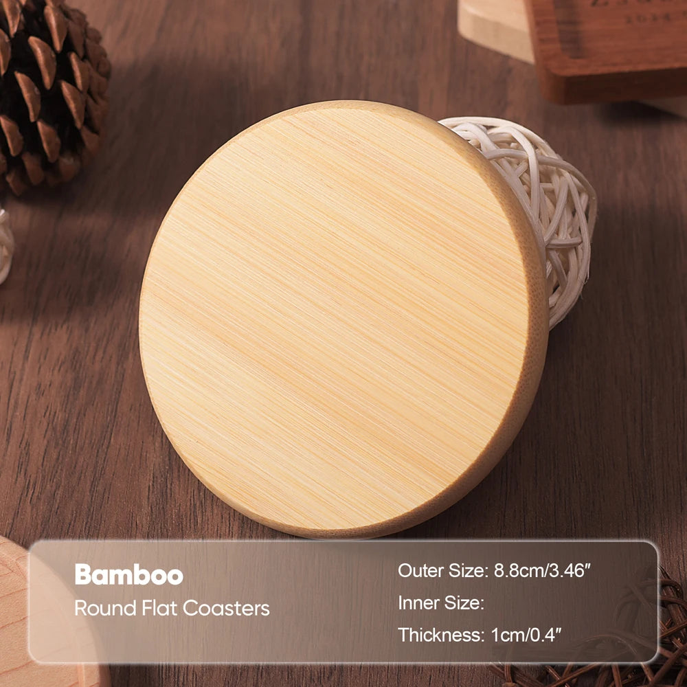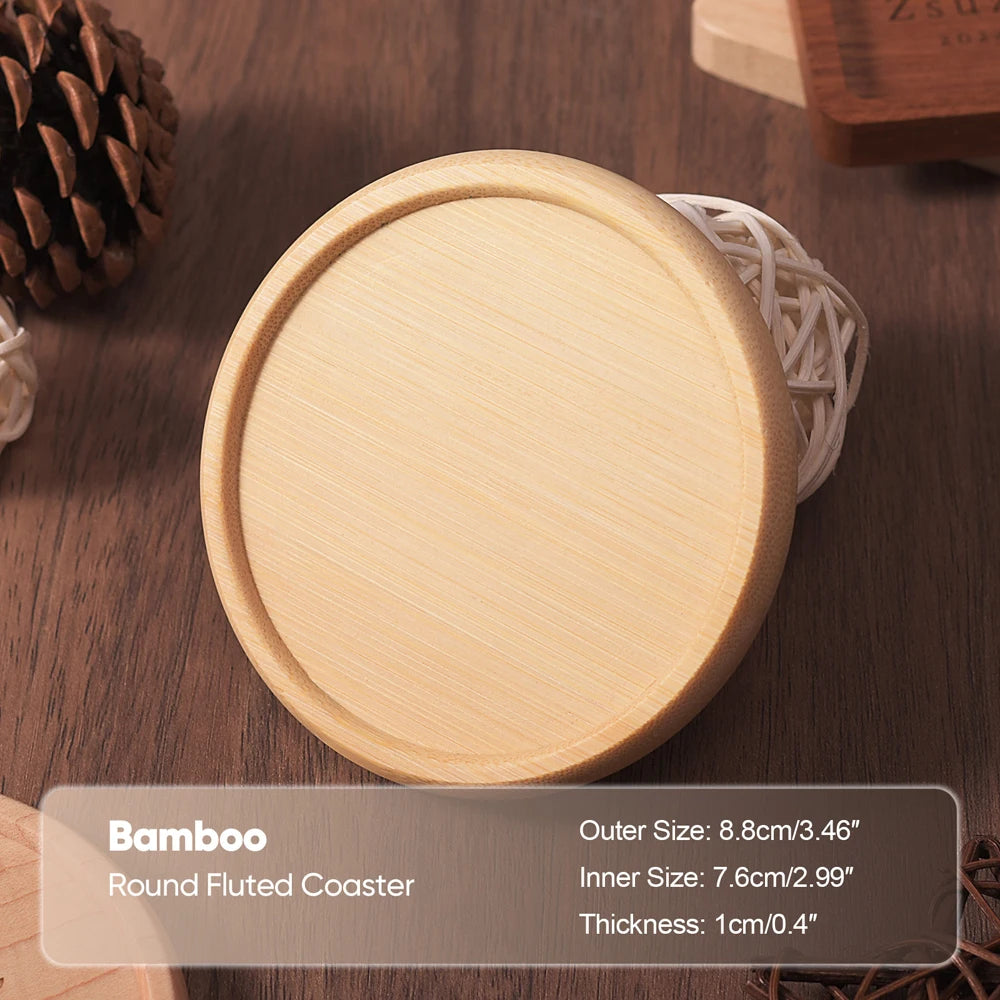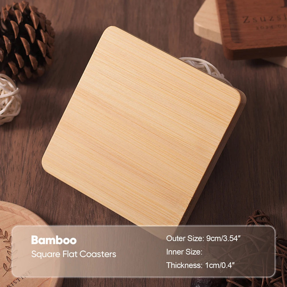 Sous-verre en bois naturel noyer ou hêtre, forme ronde ou carrée, résistant à la chaleur, idéal pour protéger et décorer une table cocooning.