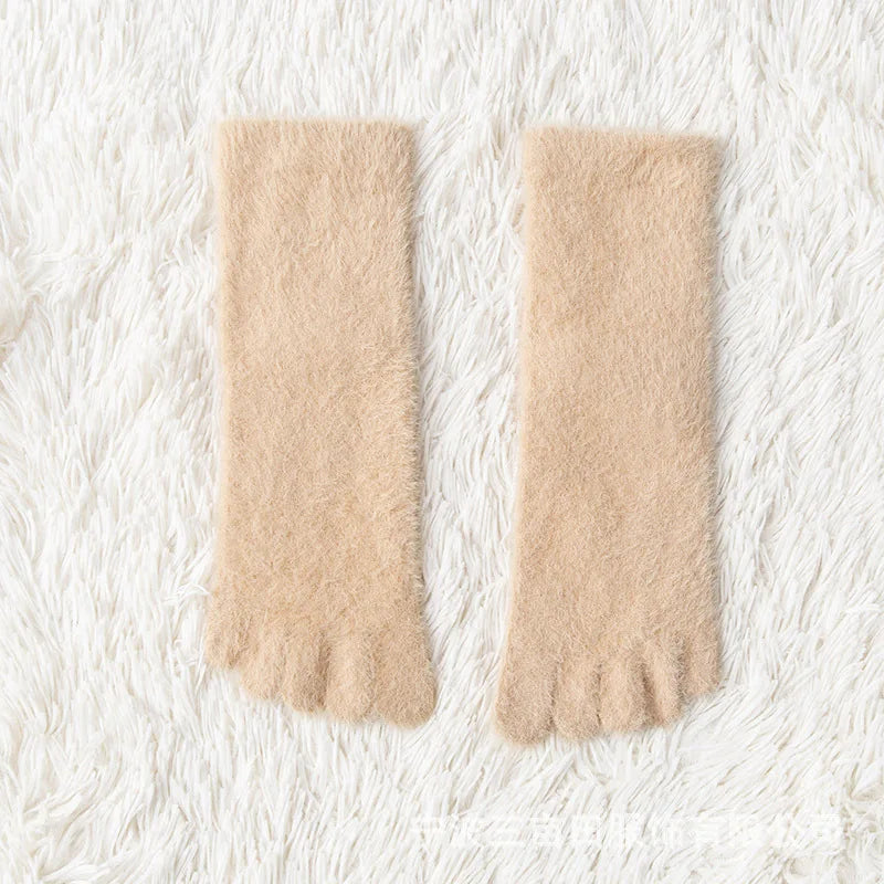 Chaussettes douillettes à cinq doigts en polaire corail, chaudes et moelleuses