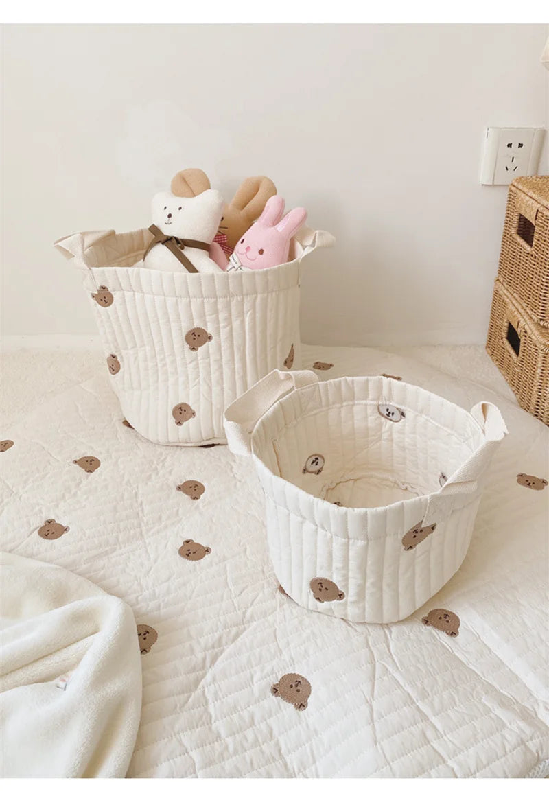 Paniers de rangement en coton brodé pour jouets, vêtements et accessoires